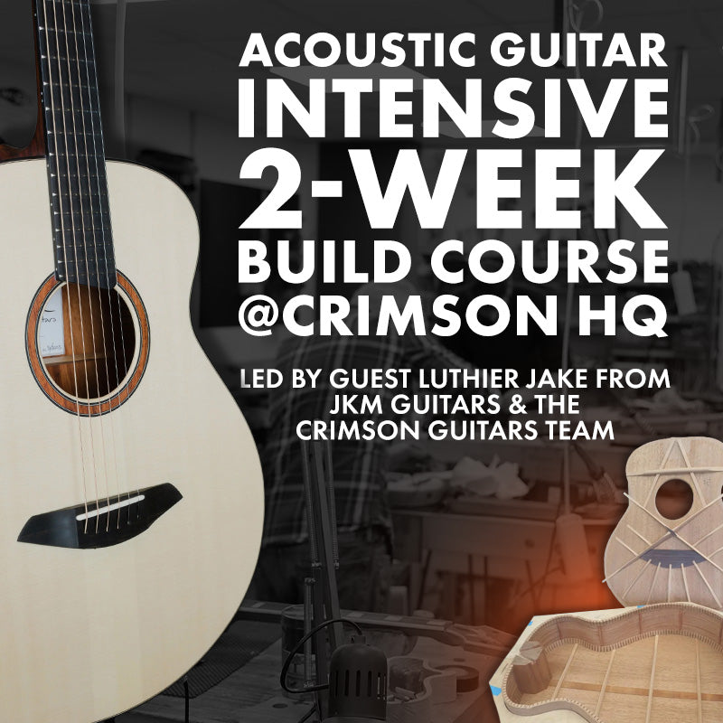 This Intensive 2-Week Acoustic Build Course gives any student the opportunity to build a traditional OM-style acoustic guitar, closely modelled on a classic Martin. This course is led by guest luthier Jake from JKM Guitars, assisted by the Crimson Guitars team, and offers a rare deep-dive into the craft of acoustic instrument construction.