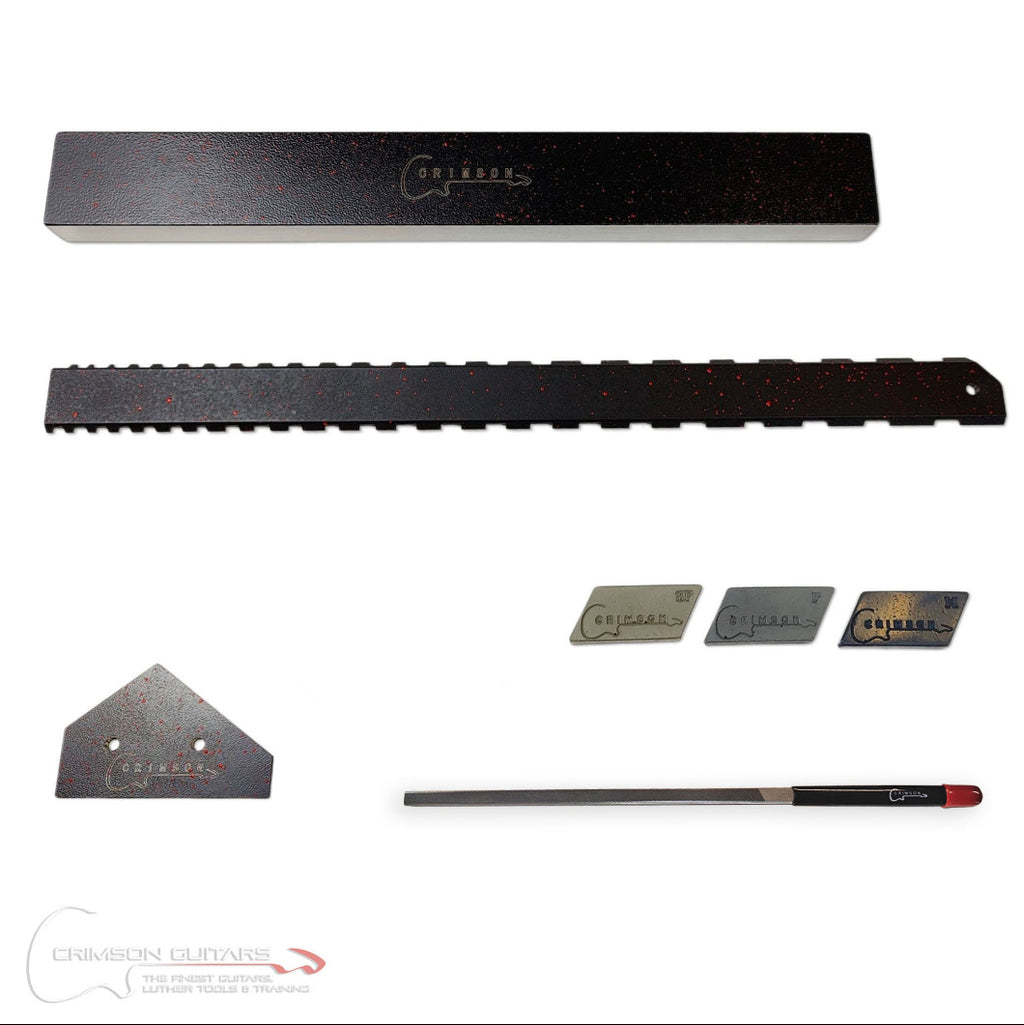 The Essential Fret Levelling and Dressing Tool Kit from Crimson Guitars will allow you to dress and crown the frets of most guitars with ease and simplicity.